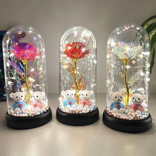 Eternal Flower Valentine'S Day Gifts Forever Eternal Flower Gift LED Light Foil Flower in Glass Artificial Flower Birthday Gifts